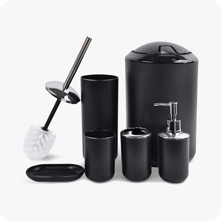 This 6-Piece Bathroom Accessory Set is made of durable plastic that can outlast competing products. It’s also ideal for kids’ bath for its durability and not easy to break like ceramic set , not easy to mildew like bamboo set. Our high quality plastic bath accessories will resist to constant use, keeping their look just as elegant and new over time